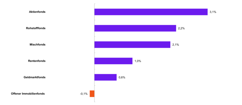 Auch im Oktober konnten viele Fondsarten eine positive Entwicklung verzeichnen. Aktienfonds legten mit 3,1 % am meisten zu und setzten damit ihren Aufwärtstrend fort. Mischfonds folgten einem Zuwachs von 2,1 %. Rohstofffonds erreichten 2,2 % und blieben damit auf einem hohen Niveau, trotz eines leichten Rückgangs gegenüber dem Vormonat. Rentenfonds (1,0 %), Geldmarktfonds (0,6%) und offene Immobilienfonds (-0,1%) zeigten nur geringe Veränderungen und hielten sich insgesamt stabil. Die Ergebnisse zeigen, dass Fondsinvestments weiterhin ein zentrales Element der Anlagestrategien vieler Kunden der FNZ Bank sind.